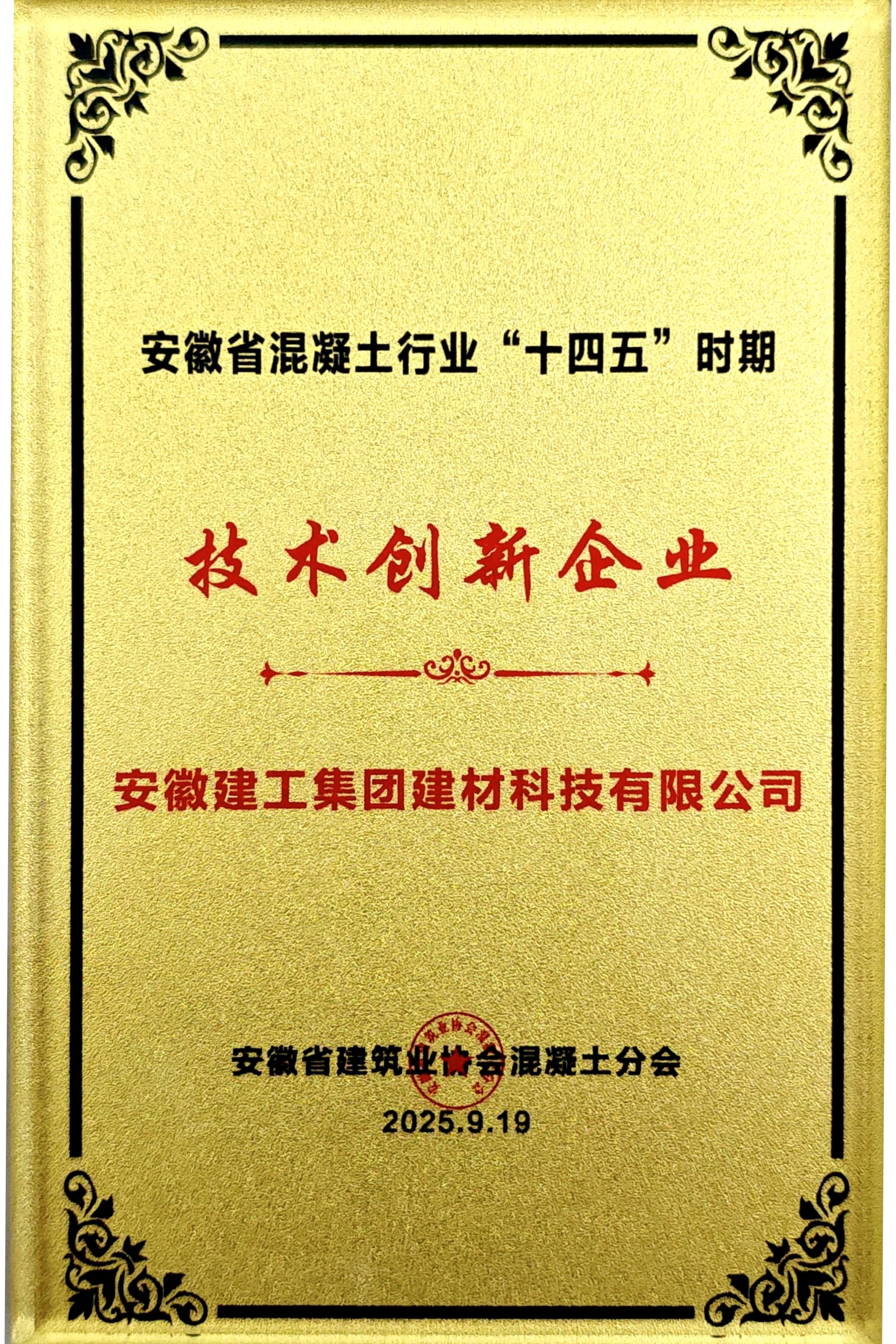 建工建材榮獲安徽省混凝土行業(yè)“十四五”時(shí)期“技術(shù)創(chuàng)新企業(yè)”稱號